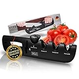 - FESTER STAND: Auch die Auflagepunkte des hochwertigen Messerschärfers sind gummiert, sodass er fest auf der Arbeitsfläche steht ohne zu verrutschen. Ein toller Küchenhelfer den man nicht mehr missen möchte!
