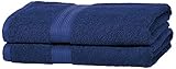 Amazon Basics Pool und Strandtuch, 100 % Baumwolle, Frottee, Cabana-Streifen, weich und saugfähig, 76 x 152 cm, 2 Stück, Marineblau