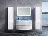 - Ansprechende Ästhetik & Wohlfühlatmosphäre: Verwandeln Sie Ihr Badezimmer in eine stilvolle Wohlfühloase mit diesem eleganten Badmöbel-Set. Der klare Glasspiegel sorgt für ein natürliches Spiegelbild und die harmonische Kombination der Möbel schafft eine einladende Atmosphäre für Ihre tägliche Routine.