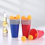 - Bier-Pong-Becher-Set: 50 Stück 500ml original amerikanische Bierpong-Becher, darunter 25 rote und 25 blaue Becher, und 12 Bierpong-Bälle (6 gelbe und 6 weiße) für alles, was Sie brauchen, um eine unvergessliche Party zu veranstalten.