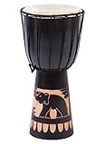- Die kleine handliche Djembe ist eine kelchförmige Trommel, mit Ziegenleder bespannt. In das Mahagoni-Holz ist zur Zierde ein Elefant eingeschnitzt.