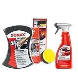 - Inhalt: 1x SONAX 04280000 MultiSchwamm 1 Stück, 1x SONAX 03101410 Cabrioverdeck & Textilimprägnierung 250 ml, 1x SONAX 03092000 CabrioverdeckReiniger 500ml