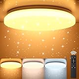 • 【LED Deckenleuchte mit Fernbedienung】Diese Deckenleuchte Wohnzimmer mit praktischen Fernbedienung, mit der sich Helligkeit und Farbtemperatur mühelos einstellen lassen. Sie können das Deckenlampe Schlafzimmer auch so einstellen, dass es sich über einen Timer automatisch ausschaltet, sodass Sie nicht mehr aufstehen müssen, um es auszuschalten. (Batterien für die Fernbedienung sind nicht) Darüber hinaus kann die Farbtemperatur durch kurzes Drücken des Wandschalters umgeschaltet werden