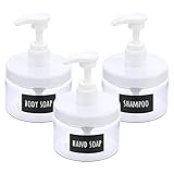 - Das Paket enthält: 3 extra dicke, mit einer Pumpe nachfüllbare Shampooflaschen aus PET-Kunststoff mit einem Fassungsvermögen pumpflasche 500ml; 6 wasserfeste, klassische Etiketten inklusive duschgel spender, hand soap, dish soap, lotion, shampoo, conditioner, body wash.