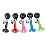 - Fahrradhupe: Sie erhalten 4 Fahrradhupen in verschiedenen Farben, schwarz, blau, grün und silber. Die Größe beträgt 21 * 5,5 cm und der Horndurchmesser beträgt 5,5 cm. Es passt auf die meisten Fahrräder.