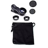 - KOMPAKT UND MULTIFUNKTIONAL - Kompaktes 3 in 1 Kamera Adapter Set zum einfachen Anklemmen. Das Set enthält folgende Objektive: Fischauge (180° Fisheye), Makro (10x) und Weitwinkel (0,67 Wide) - Farbe: Schwarz