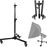 - [Mobil und kompakt] - Das Stativ verfügt über drei Vollgummirollen mit Bremse für eine einfache Handhabung und sichere Positionierung. Dank einklappbarer Beine lässt sich das Stativ platzsparend zusammenlegen, was den Transport erleichtert. Ideal für den flexiblen Einsatz im Studio oder für mobile Foto- und Videoproduktionen.