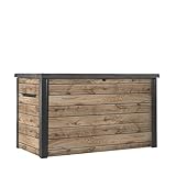 • Kunststoffbox in Holzoptik Fassungsvermögen: 270 Liter bis zu 250 kg belastbar ( 2 Personen können auf dem Deckel sitzen )