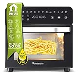 - LEISTUNGSSTARKES 3-in-1-GERÄT MIT GROSSEM VOLUMEN: Dieser vielseitige Multifunktionsbackofen vereint gleich 3 Geräte in einem: Heißluftfritteuse, Ofen und Dörrautomat. Mit einer hohen Leistung von 1800 Watt und 6 integrierten Heizelementen bietet er kraftvolle und gleichmäßige Hitze. Der großzügige Innenraum mit 30 Liter Fassungsvermögen und 4 Ebenen ermöglicht es, mehrere Portionen oder verschiedene Gerichte gleichzeitig zuzubereiten. Ideal für Familien und Gäste. | 307733