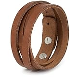 - FARBE & GRÖSSE - Hellbraun - gealtertes Echtleder; es wird mit der Zeit eine natürliche dunklere Patina bekommen. Max. Länge: 92 cm; Schnurdicke: ca. 3,5 mm. Um es perfekt an Ihr Handgelenk anzupassen, binden Sie einfach einen neuen Knoten über dem Metallknopf und schneiden Sie die überschüssige Länge des Lederbands ab