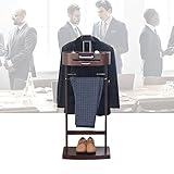 - 【Spezielle Anti-Falten-Anzughalterung】Dieser Herrendiener verfügt über breite Kleiderbügel für frische Hemden und Jacken sowie einen Hosenbügel, der Faltenbildung verhindert. Der Sockel verfügt außerdem über ein Schuhregal zur einfachen Aufbewahrung und Organisation Ihrer Schuhe.