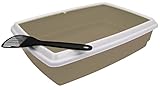 Aimé | Katzentoilette für Katzen | Katzenklo offen mit Rand und Katzenklo Schaufel | Einfach zu reinigendes Katzenklo offen | Hygienische Katzentoilette aus Kunststoff | Farbe Taupe | 44 x 34 x 11 cm