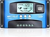 - Konverter 30A, Solar Ladegerät Controller Spannung 12V/24V automatische Identifikation und zwei USB Ports maximal 5V/2A, LCD Display Bildschirm, maximale Photovoltaik Spannung 12V System < 23V/24V System < 46v