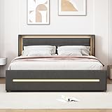 • Warmes und komfortables Design: der Körper des Bettes ist von Leinenstoff umhüllt, das Kopfteil erhöht die Schwammfüllung, V-förmige Linie Carving-Design, mit schillernden LED-Beleuchtung, um es eine moderne und Retro-Doppel Sinn der Ansicht haben. Das Kopfteil erhöht die Seite Ohr Design, so dass Sie ein Gefühl der Sicherheit wie eine Umarmung, wenn Sie schlafen.