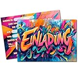 Hierein Einladungskarten Junge, 12 Stück Stylishe Graffiti Einladungskarten Kindergeburtstag Party Einladungskarten Geburtstag für Mädchen Jungen zum Kindergeburtstag und Anderen Feier