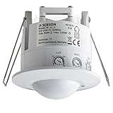- SEBSON Unterputz Bewegungsmelder (3-Draht) für die Deckenmontage im Innen- und Außenbereich (IP54) mit programmierbarem Sensor - Einschaltempfindlichkeit, Reichweite und Dauer.