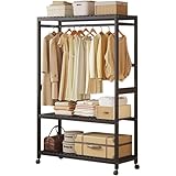 - [Platz Sparen]--Das stabile Gestell des Kleiderwagens Metall wackelt nicht, bietet nicht nur genügend Platz zum Aufhängen von Jacken, Mänteln, Kleidern, Hemden, Pullovern etc.Schuhe und Aufbewahrungsboxen können auch auf dem unteren Regal platziert werden.