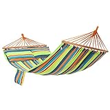 - Was Sie bekommen: Eine komfortable Hängematte mit zwei Holzstangen und zwei Kissen. Die schönen Farben und der auffällige Stil verleihen dieser Hängematte einen besonderen Charme und erschaffen einen exklusiven Genussort für Sie
