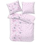 Aminata kids Mikrofaser Bettwäsche Einhorn 135x200 Mädchen Jugendliche mit Reißverschluss - Bügelfrei - vorteilhaft für Allergiker - rosa weiß mit Sternen