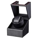 LINGFANSTORE Automatische Uhrenbeweger Box,luxuriöser Single Uhrenbeweger,Uhrengehäuse mit leisem Mabuchi Motor,Batteriebetrieb oder Netzteil PU Leder (Faser aus Kohlenstoff)