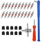 - 【Reifenventil-Werkzeugsatz】 Enthält 40 Schrader-Ventileinsätze, 20 Reifenventilkappen, 1 Einzelkopf-Ventileinsatz-Entferner, 1 verlängertes Einzelkopf-Ventileinsatz-Werkzeug, 1 Doppelkopf Ventileinsatz Entferner und 1 Vierwege-Ventilwerkzeug.