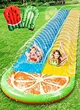 Sloosh 22,5ft/685,8cm Wasserrutsche mit 2 aufblasbaren Boards, doppelte Rasen-Wasserrutsche mit fortschrittlichen Sprinklern, Sommerspielzeug für Kinder und Erwachsene, Spaß im Garten, Orange