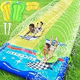 Sloosh 18ft/548cm Dreispurige Rutschbahn mit 3 Bodyboards, Rasen-Wasserrutsche mit Sprinkler für Kinder und Erwachsene, Außen-Wasserspielzeug für Sommer-Spaß